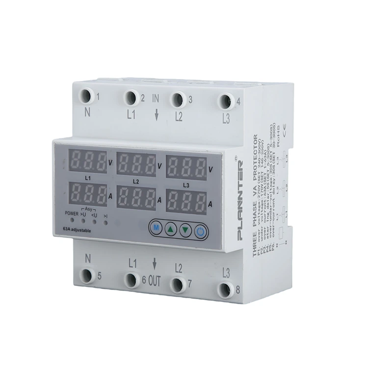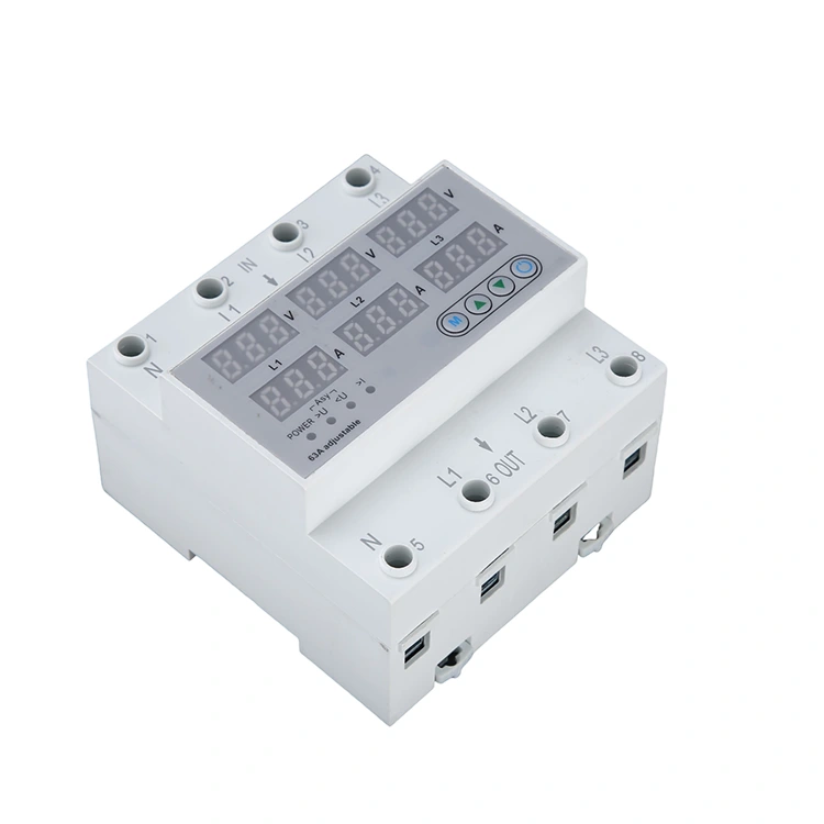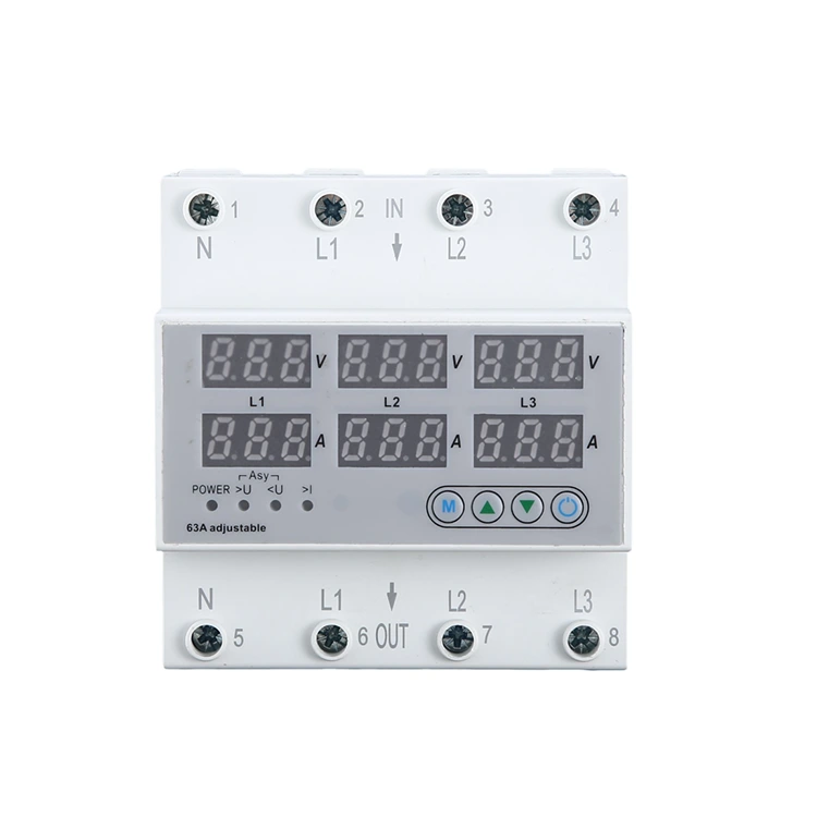 63A 80A 100A кернеуден қорғағыш кондиционерлер, кір жуғыш машиналар, лифттердің үлкен жарықтандыру жүйелері және т.б. сияқты тұрғын үй және шағын электрлік қолданбаларға жарамды. Ол тұрмыстық құрылғыларды төмен кернеуден, асқын кернеуден және артық токтың зақымдануынан қорғайды және тұрақсыз кернеуі бар орталар үшін әсіресе қолайлы. Кірістірілген СКД дисплей қуат және қуат тұтыну сияқты нақты уақыт мәндерін көрсетеді. Реттелетін асқын кернеу сияқты теңшелетін шектер: 230 В - 300 В; төмен кернеу: 80 В-тан 210 В-қа дейін және интеллектуалды автоматты қалпына келтіру тоқтау уақытын және техникалық қызмет көрсету шығындарын азайту үшін мәндерді өз қажеттіліктеріңізге сәйкес реттеуге мүмкіндік береді.